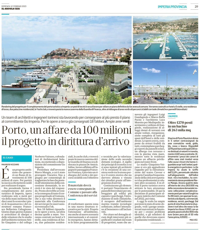 The New Marina project reimagined and modernized old architectural concepts, addressing present sustainability and energy efficiency needs. Focused on the environment, international trends, and energy control, the design enhances a vital area envisioning the sea, city, and port's future. A green connection linking port and historic center integrates services, solar panels shading buildings and parking, climatic islands, and advanced marine technologies. Well-being and inclusivity stand at the heart of Imperia Port's revival.